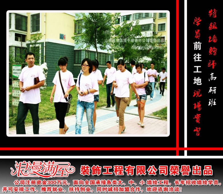 友情提示:浪漫满屋手绘自悟禅老师创立至今已有15年之久,良好的业界口碑被大众所认可的同时,也不免有李鬼的冒充行骗,正规的浪漫满屋手绘是一家公司,并不是个人工作室(个体工商户),请大家一定擦亮双眼,查验真伪,谨防假冒,避免受骗!学墙绘请认准正宗!没有悟禅老师的浪漫满屋手绘必假无疑!